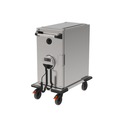 Umluftbeheizte Frontlader Transport-Wagen von Speisen in GN-BehÀltern (Inhalt mit GN: max. 70,4 L), Edelstahl, mit regelbarer Umluftheizung (max. +100 °C), mit 16 fugenlos tiefgezogenen Sickenpaare von Speisen in GN-BehÀltern (Inhalt mit GN: max. 70,4 L)